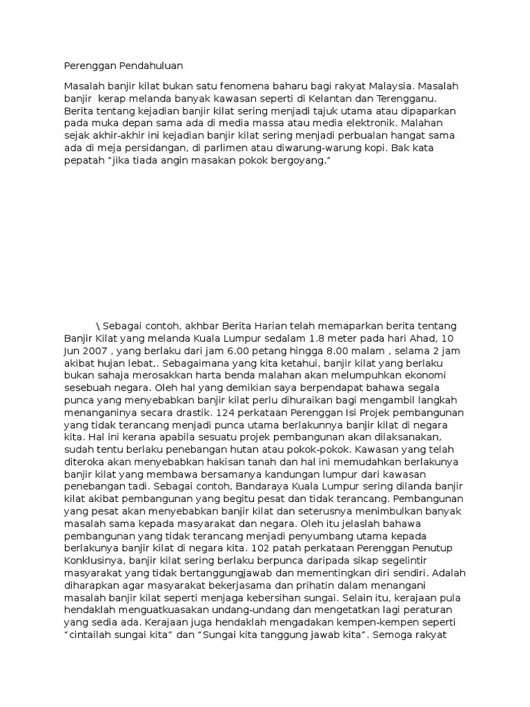Pas untuk siswa belajar bahasa indonesia pelajaran mengarang. Anda lagi ada tugas dari guru untuk membuat contoh teks berita singkat tentang banjir? Karangan tentang banjir bahasa jawa. Contoh teks eksplanasi banjir berisi tentang proses sebab akibat terjadinya bencana banjir secara umum teks eksplanasi merupakan sebuah . Semua · tentang · artikel · video . Contoh karangan singkat tentang pentingnya menjada kebersihan lingkungan. Saban hari, berita dan laporan tentang bencana alam seperti banjir kilat dan tanah runtuh telah menghiasi dada akhbar. Latar belakang saya mengambil permasalahan mengenai banjir karena saya merasa.